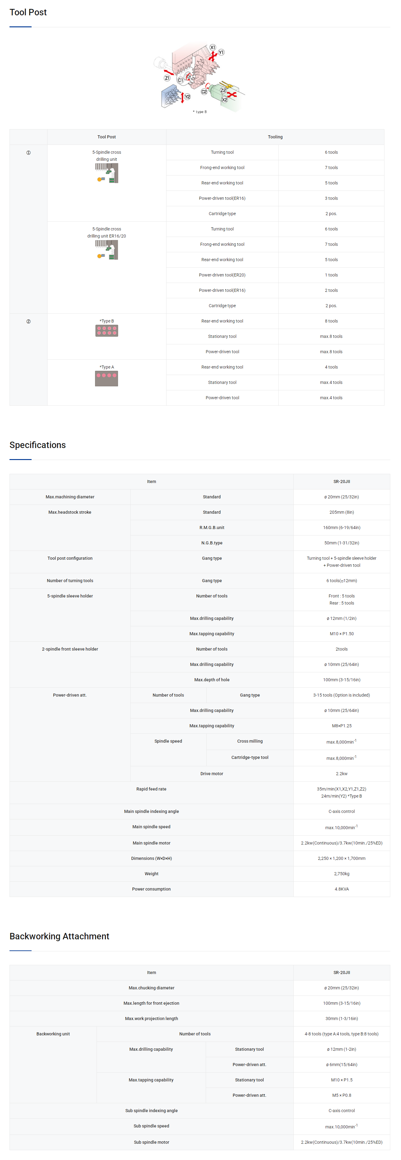 • Type A is equipped with a 4-spindle type and Type B is equipped with Y-axis control / 8-spindle type backworking tool post.