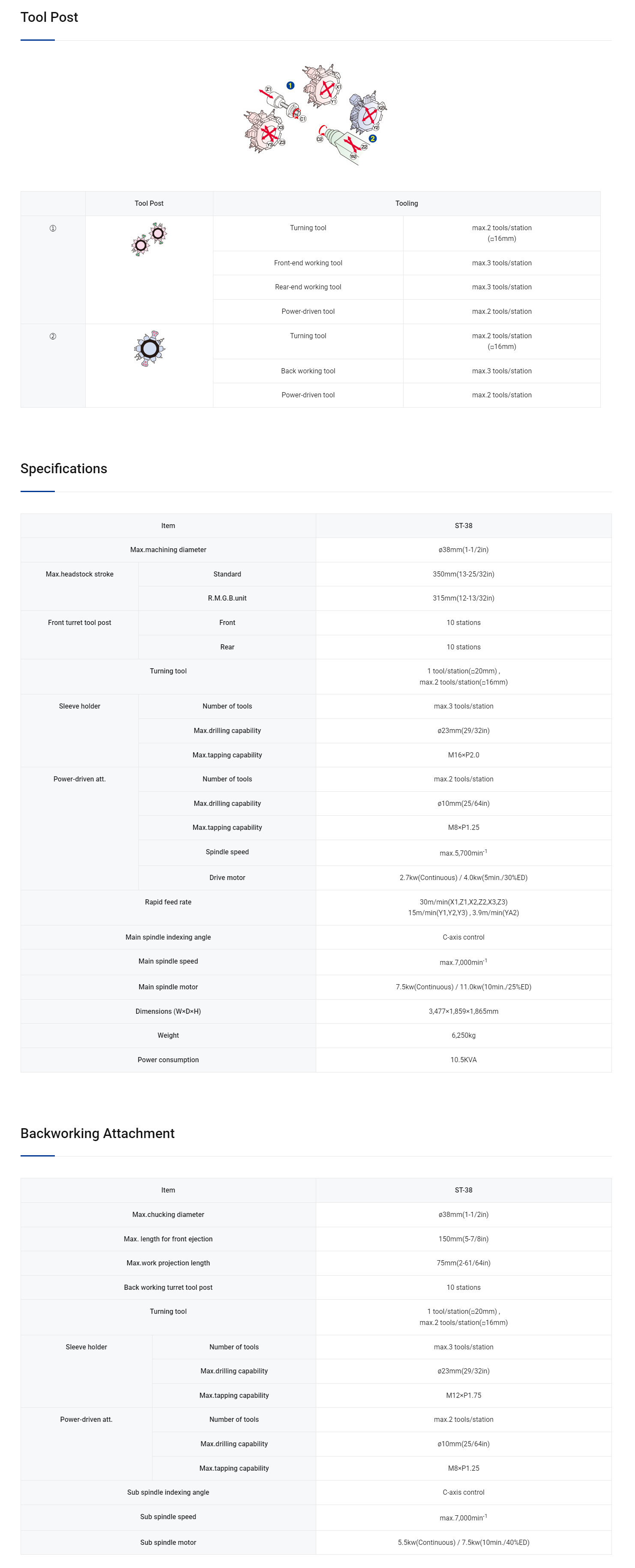 • Independent machining of front and rear ends by backworking turret reduces the cycle time yet further.