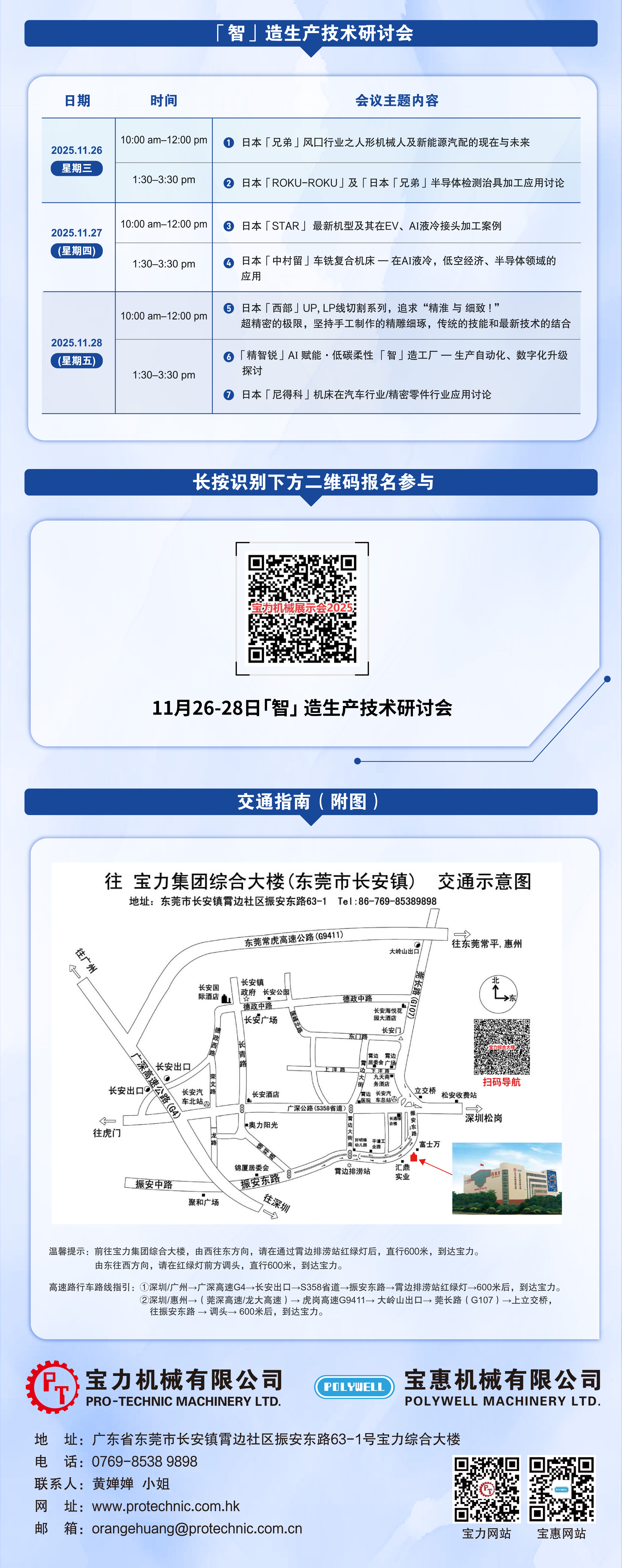 感谢您长期以来对宝力机械集团的信任与支持!我们诚挚邀请您参加即将于2025年11月26日至28日,在宝力综合大楼隆重举办的「智」造生产技术研讨会暨技术方案展示会2025。
