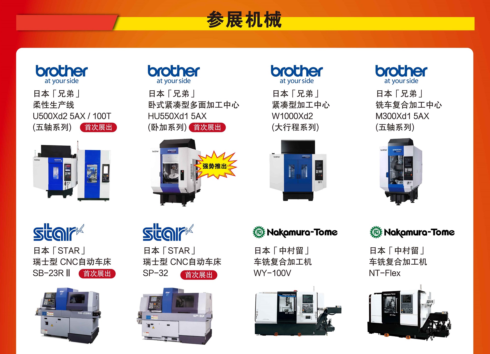中国数控机床展览会(CCMT)始创于2000年,每逢双数年在上海举办。本次展会展出面积20.2万平方米,2000多家境内外展商将展示全球机床工具业界前沿的新产品、新技术、新工艺,将呈现一场数字化、新技术与机床完美结合的制造业顶级盛会。在本届展会,我们将呈现一系列高端制造设备与创新自动化解决方案,包括日本「兄弟」紧凑型加工中心、铣车复合加工中心、日本「STAR」瑞士型CNC自动车床、日本「中村留」车铣复合加工机、日本「西部」数控超精密线切割机、日本「东京精密」测量机以及德国「ZEISS」三维光学扫描系统等。