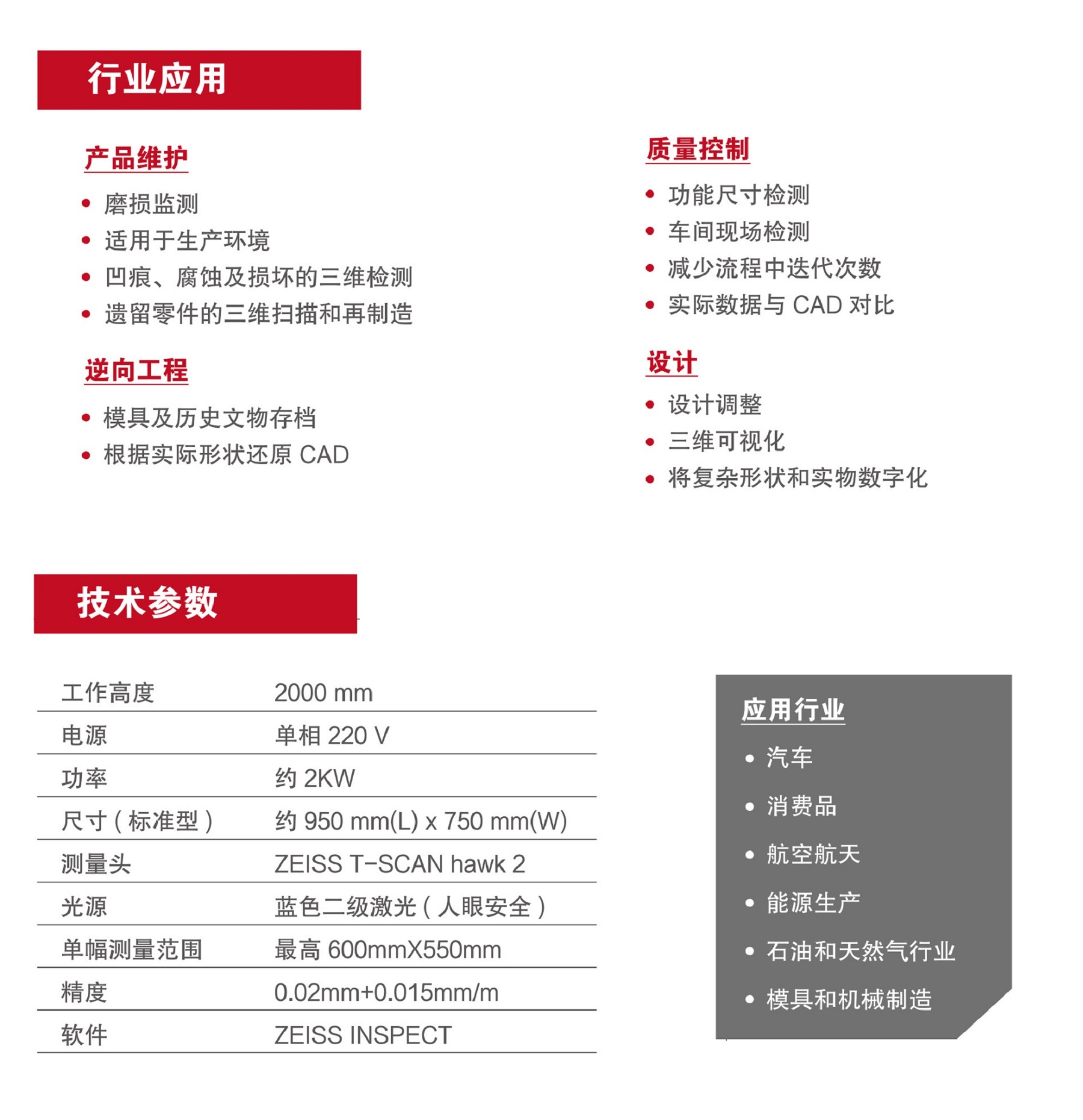 • 高精度激光扫描,小型零件、精细细节、大型物体或深孔均可扫描