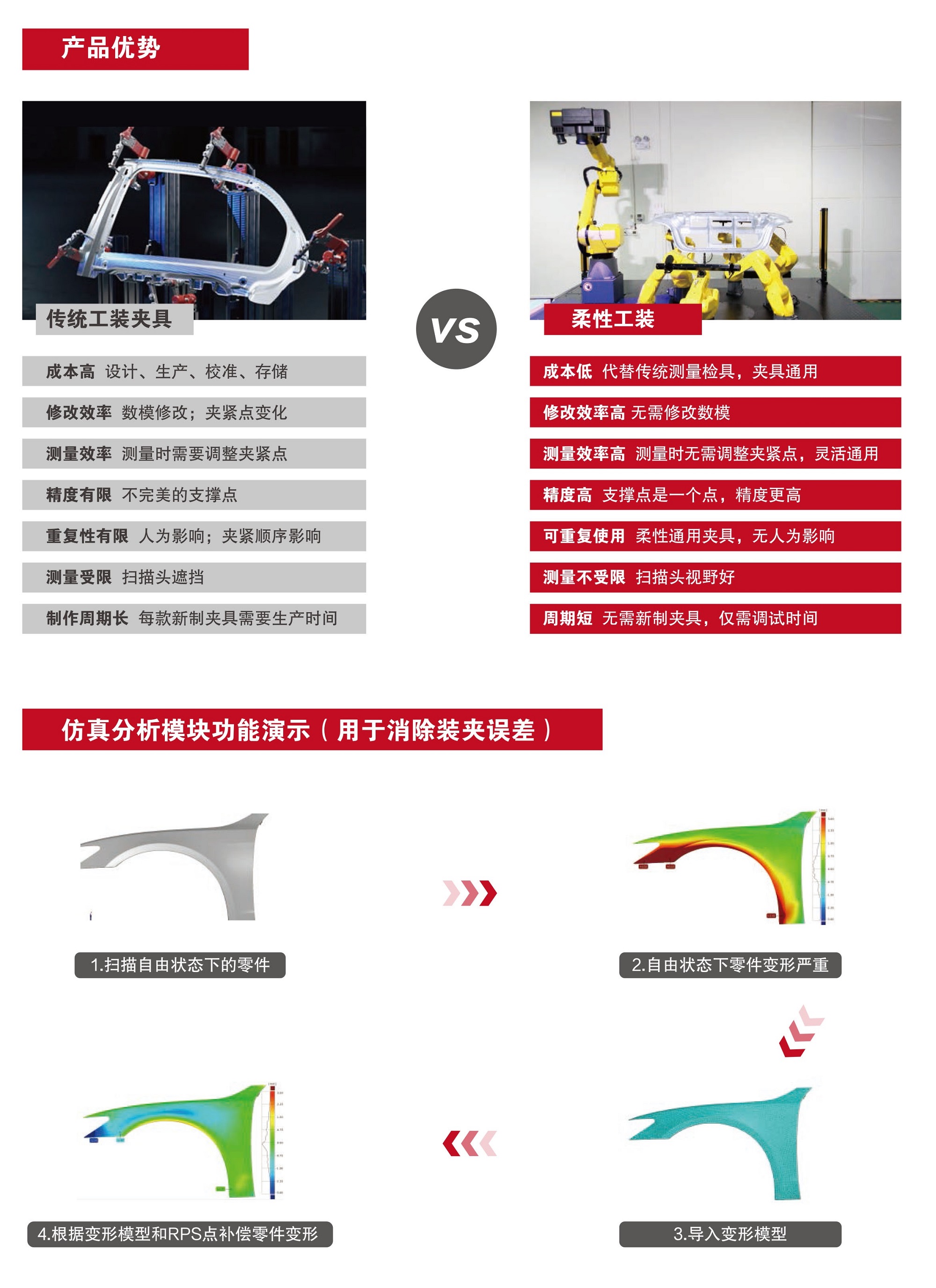 ZEISS ScanBox/三维光学扫描检测ATOS 技术+精智锐柔性装夹机器人+虚拟装夹(Virtual Clamping)软件系统组合;创新变革先进技术,无需真实固定夹具,自然放置状态下模拟虚拟夹紧的测量数据,更精准、更高效的整体3D测量解决方案。