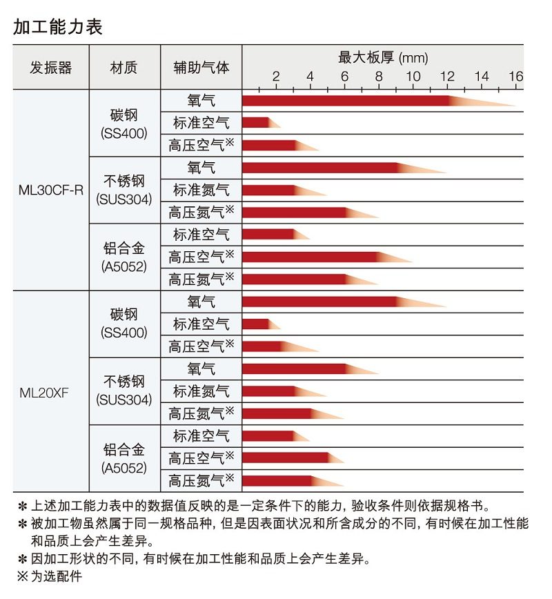 提高加工速度:採用的高壓氣體NC控制和輔助氣體最佳化技術,大幅度提高了加工速度。新增的3kW發振器更進一步提高了加工速度。