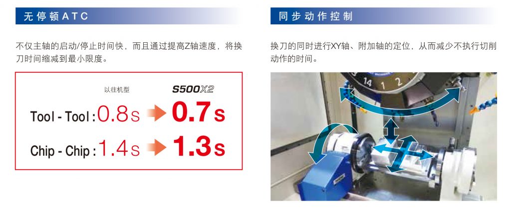 • 高生产性追求高生产性、高响应性伺服、无停顿ATC、同步动作控制。