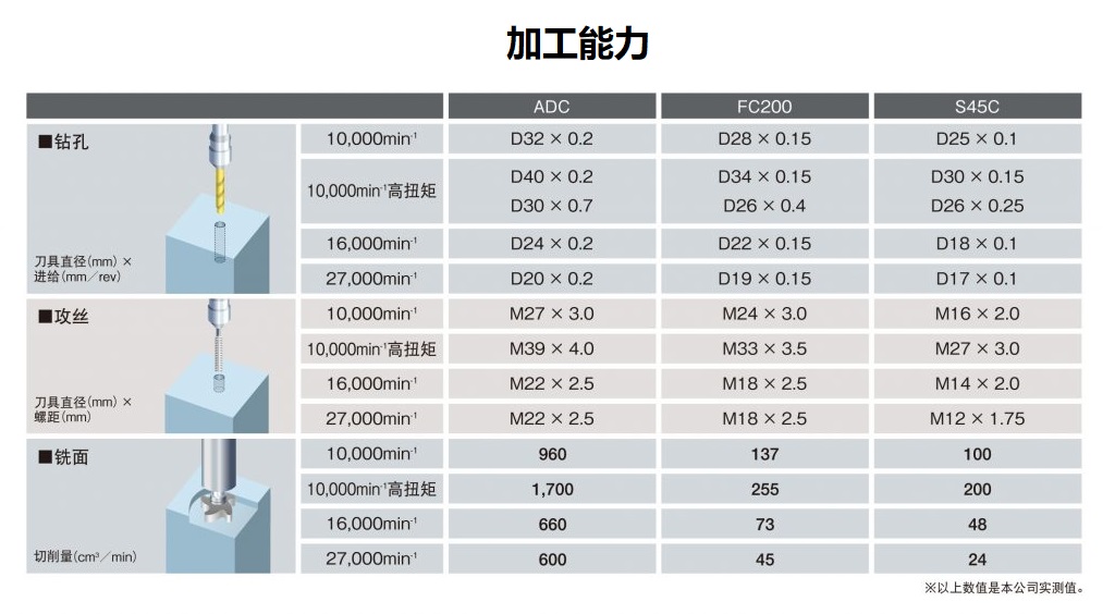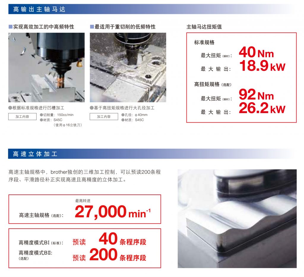 • 强切削力高刚性结构、高输出主轴马达、高速立体加工。