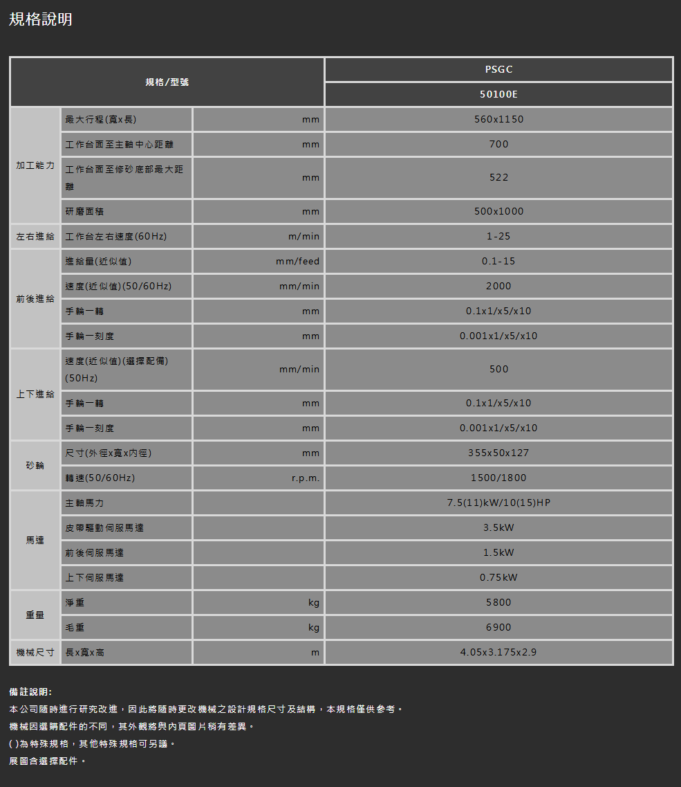 - 工作臺左右滑道長度遠長於臺面之長度(一般均為等長)而與工作臺長度相等,如此工作臺於高速運動中不會發生扭曲變形而失去精度(PSGS系列除外)。