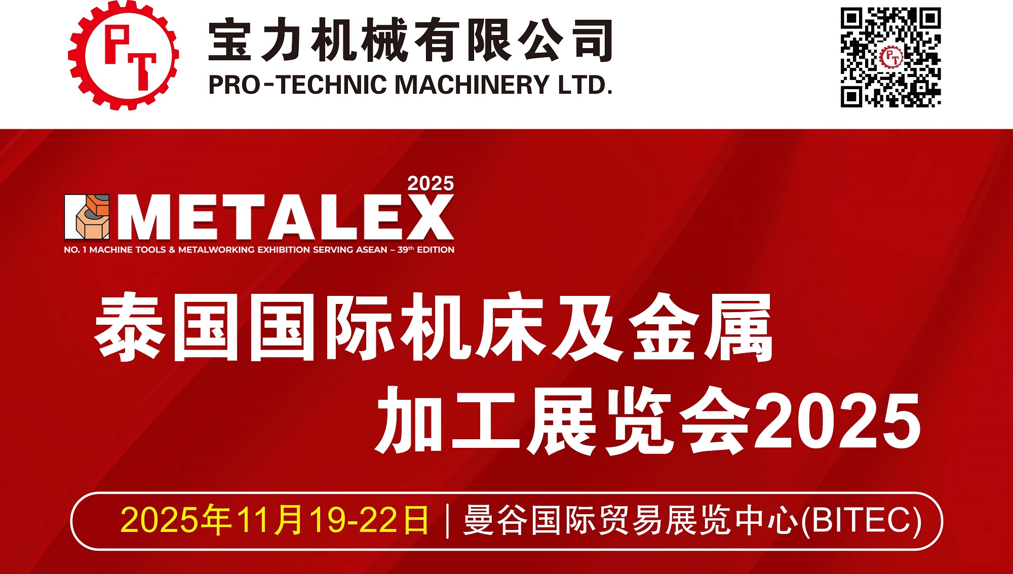 我们诚挚邀请您莅临参观2025 METALEX泰国国际机床及金属加工展览会,该展会将于2025年11月19日至22日在泰国曼谷BITEC展览中心隆重举行。METALEX作为东南亚地区规模最大、影响力最广的制造业盛会之一,汇聚全球顶尖的机床设备、自动化技术与智能制造解决方案,是亚洲工业领域的重要风向标。