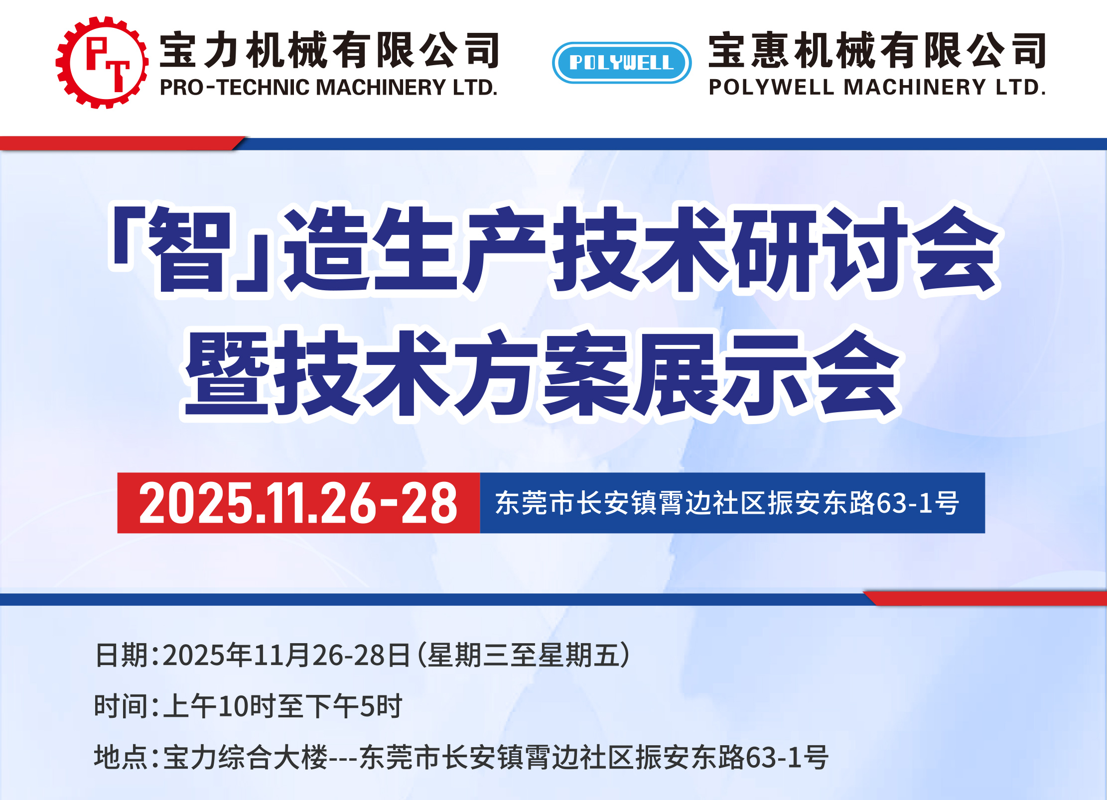 感谢您长期以来对宝力机械集团的信任与支持!我们诚挚邀请您参加即将于2025年11月26日至28日,在宝力综合大楼隆重举办的「智」造生产技术研讨会暨技术方案展示会2025。 本次展示会将集中呈现我司最新研发成果与来自全球的先进设备,涵盖多领域高精尖技术,包括:日本「兄弟」紧凑型加工中心、「STARJCNC自动车床、「中村留」高刚性车铣复合机床、「尼得科」卧式加工中心、「西部」数控精密型线切割机、「海克斯康」三坐标测量机、「惠普」3D打印机、「ZEISS」自动化三维光学扫描移动检测系统等。同时还将展出「精智锐」柔性工装测量系统、桁架自动化单元等一系列创新应用。