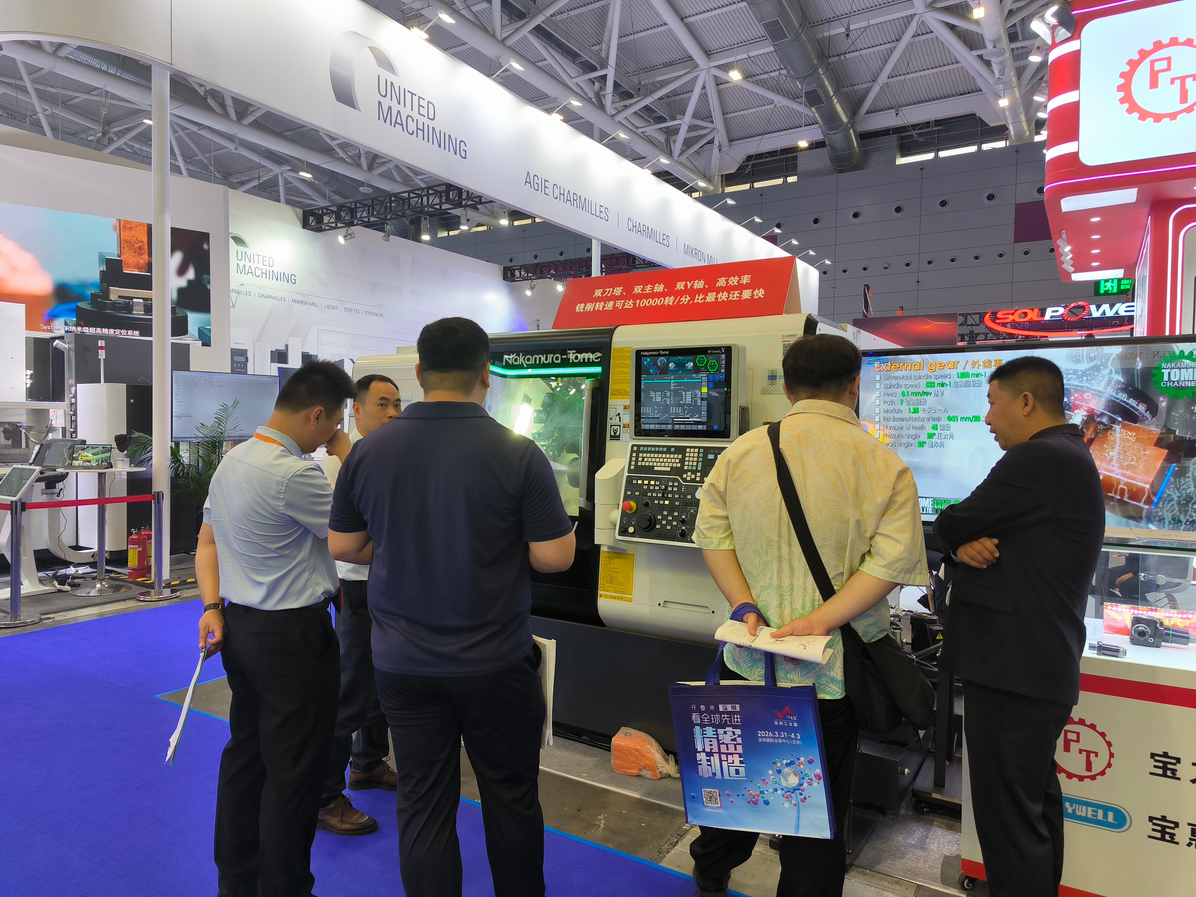 我们位于7号馆7-C01展位。现场集中展示了日本「兄弟」紧凑型加工中心、「STAR」瑞士型CNC自动车床、「中村留」车铣复合加工机、「尼得科」卧式加工中心、「西部」超精密线切割机,以及「东京精密」与「海克斯康」的高精度测量设备,还有「精智锐」自动化蓝光测量系统。四天展期内,吸引了众多专业观众与行业客户。 来自不同领域的采购商、技术工程师、企业管理者纷纷驻足,围绕设备性能、加工精度、产线适配等实际问题,与现场技术团队展开深入交流。
