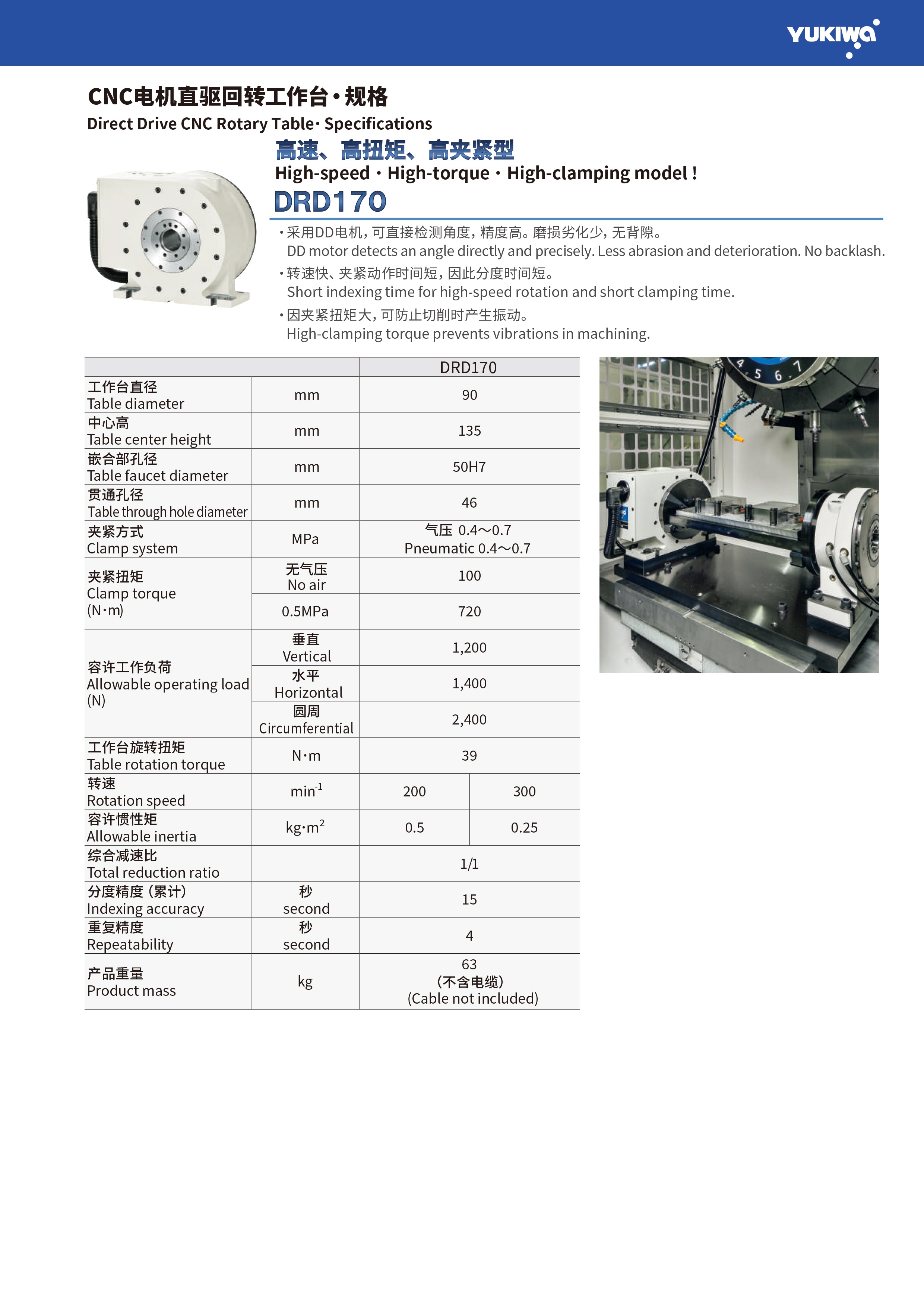 YUKIWA 高速、高扭矩、高夹紧型 DRD170