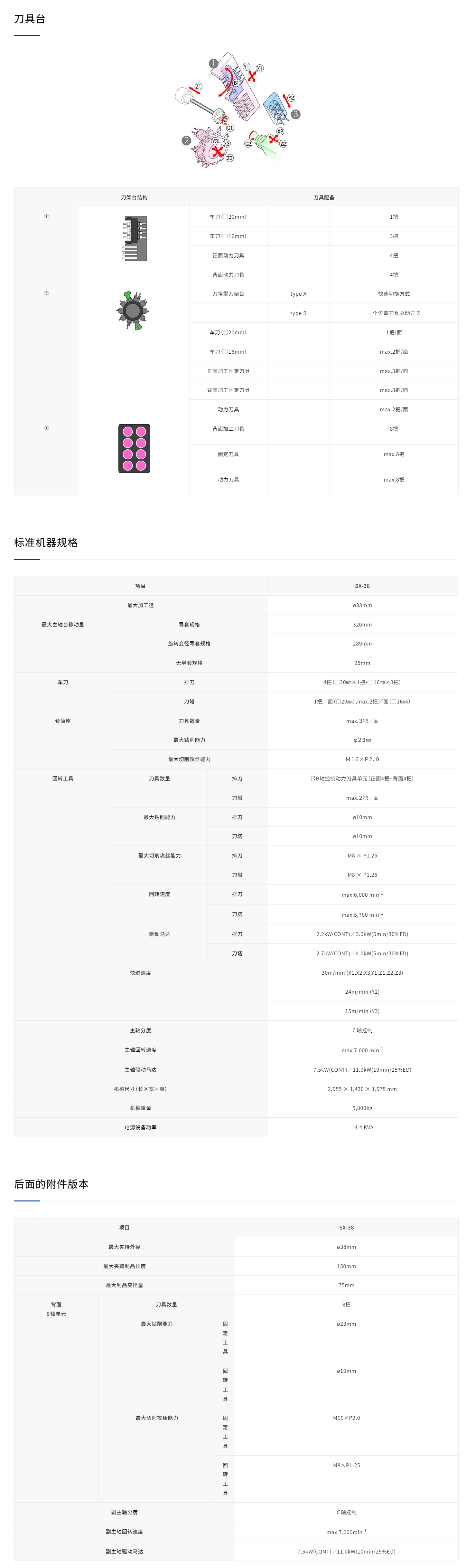• 在type A上搭载了可使用传统刀具单元的快速切换方式刀塔型刀架台; type B上搭载了单个位置刀具驱动式刀塔型刀架台。