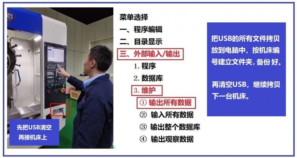 6、如果担心加工程序,机床参数等数据丢失,请备份所需内容后保存到电脑或U盘内。