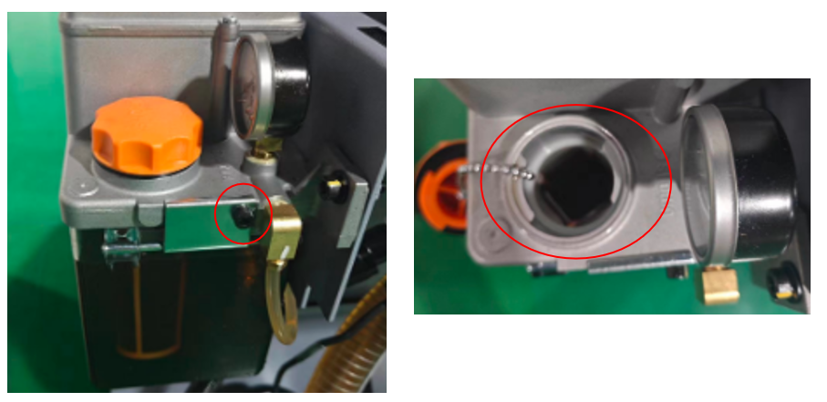 下方为SB-20RG油壶,注油孔的过滤网定期清洁。油壶也需要定期清洁。松开左右两边的黑色内六角螺丝,银白色扣子往左边拉,油壶可以分离,清洁油壶底部污垢。
