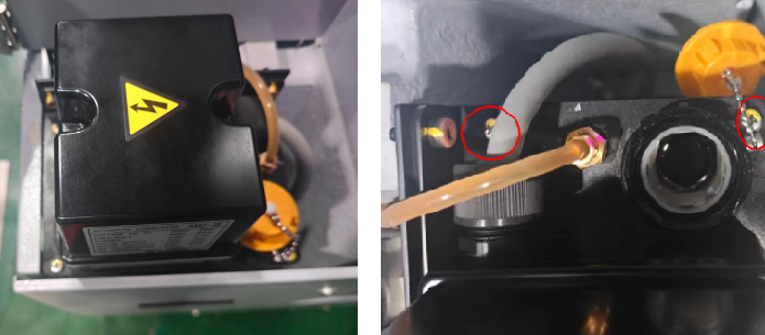 下方为SR20RIV油壶,注油孔的过滤网定期清洁。油壶也需要定期清洁。 首先拆下前面电柜的门板。拆下4个螺丝即可取出油壶,清理油垢后回装油壶。