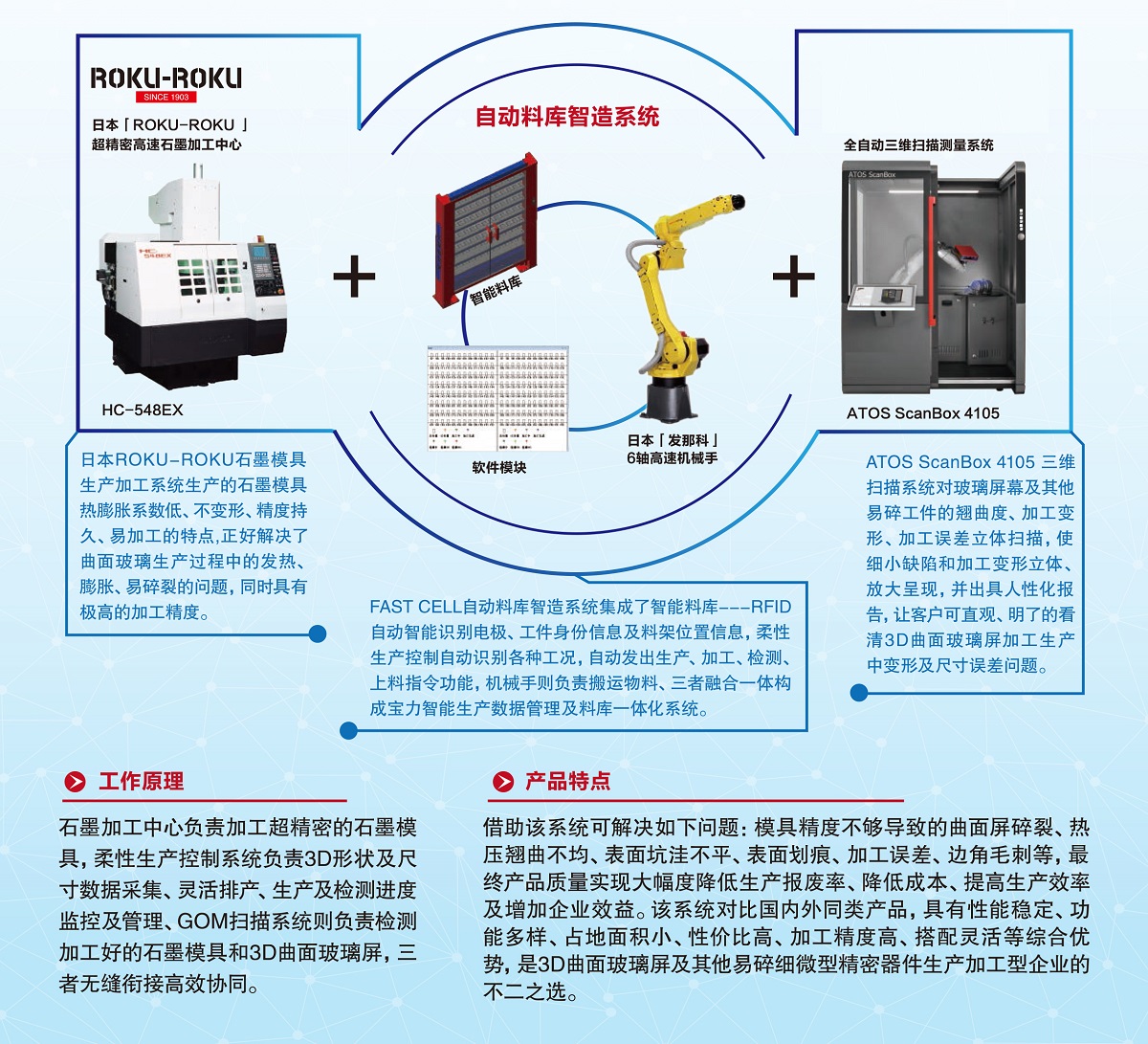寶力機械基於行業、用戶的需求,致力於提供多位一體的創新智能解決方案,現無縫集成ROKU-ROKU石墨加工中心、ATOS ScanBox 4105 全自動三維掃描測量系統、以及寶力自主研發的FAST CELL自動料庫智造系統,打破單一的加工、生產、檢測資訊孤島格局,以推動中國製造轉型升級,真正實現生產、加工、檢測三位一體的全自動智能化生產加工檢測。
