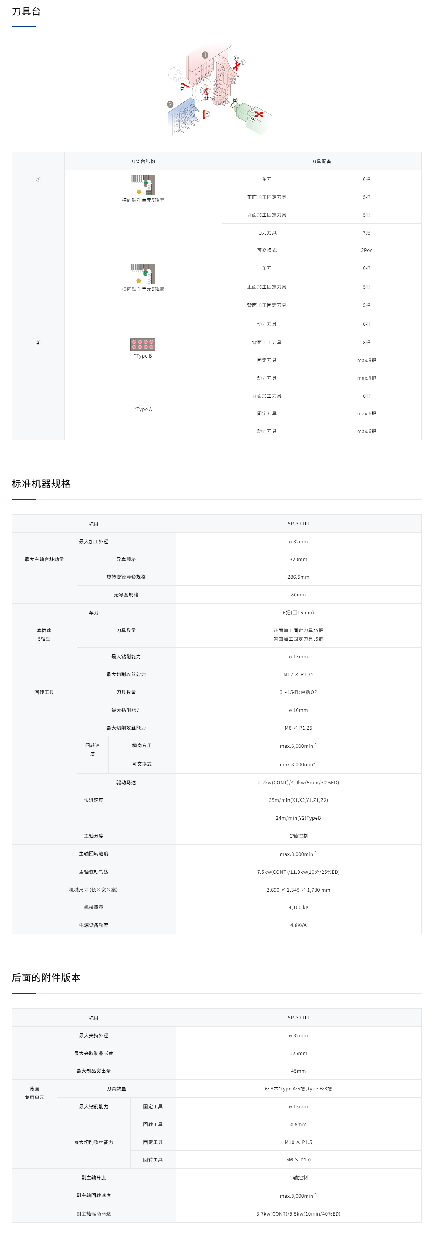 • 在type A上搭載6軸型、type B上搭載附Y軸控制8軸型的背面刀架台。